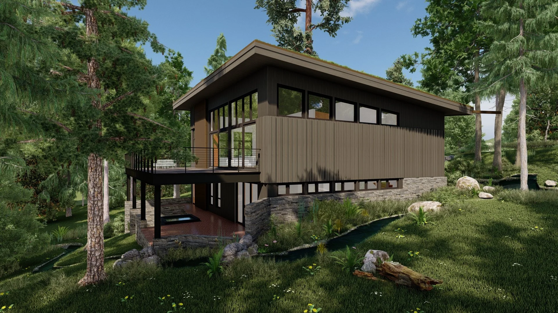 This in-design mountain modern home has been conceptualized to take advantage of spectacular, mountain and forested views while meeting the demands of a modern retreat.